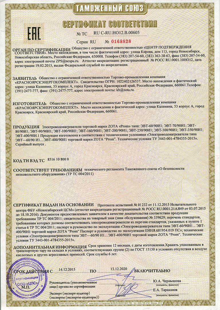 - несколько систем безопасности отключают электрический котел Zota Prom при перегреве теплоносителя, коротком замыкании в нагрузке или неисправности циркуляционного насоса;