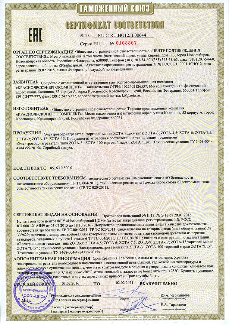 Купить электрический котел от компании Zota можно через торговый интерфейс нашего интернет-магазина, а также позвонив по телефону +7 (391) 269-97-54. Удобная функция заказа обратного звонка сэкономит ваше время и даст ответы на возникающие вопросы.